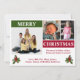 Det här är ett julkort med plats för 3 bilder, tillgängligt i många färger och helt anpassningsbart. Det har en modern look med Merry Christmas-block och julplundmotiv på framsidan och baksidan. Designen möjliggör adressering på baksidan eller gott om utrymme för att skriva en personlig hälsning. Kontakta MineByDesign för hjälp med detta eller anpassade designer!