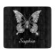 En klassvit diamantfjäril-design som anpassar namn i vit skripttext på svart bakgrund. Klicka på Anpassa om du vill ändra färg och skriva stilar.