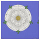 Vit ros var en av flera apparater som syns på Yorkist emblem och baner. Denna original- illustration av Richard H. Fay baseras på olik medeltida-period heraldiska ro.