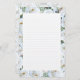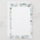 Vit ros gräns personliga kontorsmaterial med linjer. Skrivdokumentet har ett skiktat utseende med vit ros och rosenknoppar och grönt runt kant. En benvit panel med ljusa linjer i mitten kan användas för att skriva en personlig anteckning. På baksidan täcker en ljusare ro-bakgrund den pappra. Papper har valfria uppgraderingar.