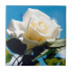 Vit ros under blå himmel. Ett lysande foto av ett vackert blommande ro gör en underbar blommigt av väggkonst. Lugnens skönhet i vit ros återspeglar nystart, renhet, lojalitet och oskuld. Vit ros symboliserar det unga kärlek som bruden har för sin make. Vit ros symboliserar också grunden för ett förhållande, vilket är anledningen till att de ofta ses på en bröllopsdag. Vit ros är en traditionell bröllop-blomma. Vit ros är en passande blomma för att fira ett nytt romantiskt och civilt band.