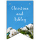Den vackra blommigten bröllop buntar flaggor med ett drömt vit ros och en tydlig blå sommartid i himlar.