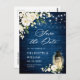 Vit ros Blue Wood Bröllop spara datum Vykort