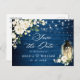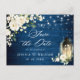 Vit ros Blue Wood Bröllop spara datum Vykort