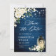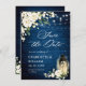 Vit ros Blue Wood Lantern Bröllop Spara Datumet