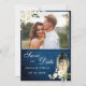 Vit ros Blue Wood Lantern Photo Bröllop Spara Datumet