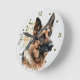 Vit ros Bouquet German Shepherd Hund Rund Klocka
