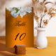 Dessa kort för elegant och det moderna bröllop-bordsnumret är perfekten för att tillföra färg och sofistikering till din stora dag. Den ljusa bakgrunden till orangen kompenseras av vit ros känsliga bukett, som skapar en bedövande och öga-fångstande visning. Dessa kort för bordsnummer är perfekter för alla bröllop-teman, från traditionella till moderna. De skulle också vara ett underbart val för en möhippa, förlovningsfest eller något annat särskilt tillfälle.