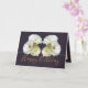 Vackert vit ros i en elegant blommigt arrangemang bukett mot en mörk plum färg bakgrund. Hälsning-födelsedagstexten användor ett attraktivt typsnitt för skript. Blommorna täcker framsidan av detta kort som kan användas som ett tackkort, ett födelsedagskort eller något annat kort som du väljer. Anpassa den med din text och/eller bilder för att göra den till en sorts!