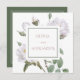 Bröllopsinbjudan till vit ros Elegant Blommigt designad med Vit ros Blommar på en vit bakgrund med accenter för grönt blommigt och grönt gräns. I texten på framsidan ingår Bride och Grooms första Namn. På motsatt sida finns texten om bröllopsinbjudan: Namn, datum, tid och plats för Bride och Groom, Bröllop, på gröntens bakgrund, ramad med en dubbla vit gräns. Om du vill anpassa dig infogar du bara dina uppgifter i vår enkla mall och ersätter exempeltexten.
