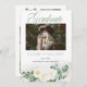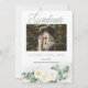 Vackert vit ros och eukalyptus blommigt buquets fyra fotokollage med tvåsidig "Student" Studenten meddelande. Lägg helt enkelt till foton och detaljer i din grad för att slutföra den här designen. Sammansatt design efter Helgdag Hearts-design (reserverade höger).