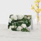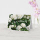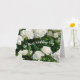 Min originalgrafik med mitt originalfoto av en vit ros-blomsterträdgård, som bearbetas med en vattenfärgsfantasi för ett illustrerat och vismiskt utseende, finns på detta söt-kort. Stater på Bröllopsdagen och på insidan av kortet stater "Med glädje och glädje, grattisar till er båda!" Ett underbart och hjärtligt kort för alla giftermål-par.