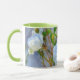 Söt mugg har mitt originalfoto av vit ros i en trädgård, präglat av en vattenfärgad painterlysteknik för ett konstnärligt utseende. Handtaget och innanför kopp är en ljust grönt ton som kompletterar teckningen. Det här är 11 uns mugg, bara den perfekt som är storlek för ditt bryggkaffe eller te - eller till och med hett choklad! Det skulle vara en underbar gåva och man kan lägga in paket med kaffe, tepåsar eller hett choklad. En annan presentidé är att lägga en liten växt i den för att göra extra speciellt för din älskade.