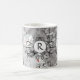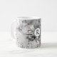 Vit ros grått, vitt blommönster monogram kaffemugg