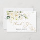 Glasaktig vit kräm ro och guld blommigt med grönt löv i vattenfärgen stil Bröllop Tack med platta kort.