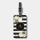 Lägg lite skönhet och stil till ditt bagage med den här vackra monogramkudden för svart och vitt. Monogrammet guld på svarta cirkeln med guld gräns inslag i mitten är slående, trendig och contemporary, adorerat med elegant vita vattenfärgblommor och söt Hösthöstens grönt. Baksidan innehåller fält för ditt namn och adress, i koordinerande guld.