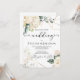 Vit ros hydrangeas greenery guld bröllop inbjudningar