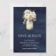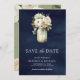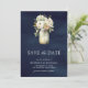 Vit ros Mason Burk Photo Navy Blue Bröllop Spara Datumet