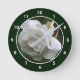Vacker vit ros med kvarvarande regndroppar naturlig väggklocka. Fotografi av Susan. Klicka på Anpassa för att lägga till text och ändra teckenstorlek, stil och färg. Denna bild finns tillgänglig på många produkter i min butik. Besök min butik på Smilin' Eyes Treasures för att se fler blomma, djur, natur och digital konst design kort och presenter för hemmet och kontoret. Länkar till alla mina butiker finns på min profilsida.
