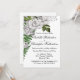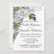 Just i elegant bröllop har inbjudan en fantastisk blommigt bukett av vit ros, petaler från grönt ro och färjefronder som skulle göra den mycket lämplig för antingen ett trädgårdsbröllop eller någon annan typ av botaniskt temat bröllop. Utformningen omfattar även vita bär och löv av mindre grönt. Baksidan av inbjudan har en enda, stor fern front på en vit bakgrund.
