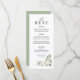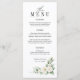 Denna Eleganta Vita Ros Bröllopsmeny har moderna akvarellblommor och frodig eukalyptusgrönska. Perfekt för trädgårds- eller vårbröllop. Anpassa menyalternativen och namnen enkelt för att matcha din speciella dag.