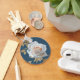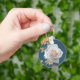 Vit ros och guld löv i blå botten nyckelring