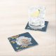 Vit ros och guld löv i blå botten underlägg papper kvadrat