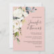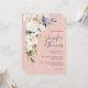 Med modern charm och elegans har den här mångsidiga bröllopsinbjudan en skarp utformning av vita blommigtar i mjuka vattenfärgsnyanser av vitt och benvitt med efterföljande grön färg. Bland blommorna finns vackert ro och vatten med andra blandade blommar. Bakgrunden till inbjudan är en rosa av trendiget feminin päron. Det här är ett bra val för vår och sommaren bröllop. Anpassa textmallen med information om bröllop.