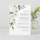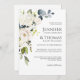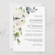Med ett populärt neutralt färg-program har den här unika bröllopsinbjudan en kaskadande bukett med vita blommigtar med efterföljande eukalyptus och grönenergi. Blommorna omfattar ro, vattenområden och matchande blandade blommigtar för en underbar effekt. De textpar som används i den här designen har en framträdande plats i briden och namn i gruppen med ett elegant serif-teckensnitt i övre fodral parsat med ett annat populärt serif-teckensnitt. Anpassa textmallen för enkel använda med bröllop-informationen. Baksidan av inbjudan är vit.