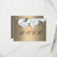 En vacker och mycket romantisk vit blommigt och blek karamel/bronze-bröllop OSA med elegant möhippa bouquet av vit ros och baby utandning tryckt på kortets framsida och en mindre vit bukett på baksidan med personligen. Just det här snyggten bröllop-meddelandet skapades särskilt för att matcha en liknande bröllopsinbjudan som du kan visa här: https://www.zazzle.com/z/fjswur0l?rf=238128988549013315