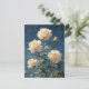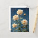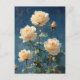 En elegant oljemålning som fångar upp kräm vit ros i fullt-blomman mot en djup marin blå bakgrund. De högtexturerade penseldragen markerar petens mjukhet och kontrasten med lush grönt löv, vilket skapar en tidlös blommigt.