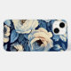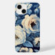 Antikalt vit ros och daisy på en rik indigo blue bakgrund.