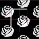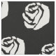En tygdesign som presenterar en design av vit ros mot en svart bakgrund. Elegant och stilfull monokrom.