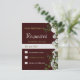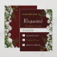 Detta matchande responskort för OSA skryter med en charmerande röd bakgrund för mörk som är fringerad med vit ros och grön på högerna och som sträcker sig från överkant till grund kompletterad med vita bokstäver och guld. Vilket bättre sätt att avsluta av din bröllopsinbjudan än genom att inkludera vår OSA kort i behållan av en lista över dem som kommer att närvara.