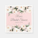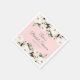 Fintvätt av vit ros överst och grund i denna elegant rosa möhippa napkins, personaliseringsdetaljer i grått typografi.