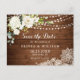 Postkort för vit ros Snöre Rustic Bröllop spara datum.
