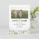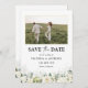 Vit ros sparar datumet med ett foto-plattkort. Den här inbjudan till snyggt och elegant bröllop har en fantastisk, handmålad vattenfärg, Greenery Vit ros. Sök efter matchande objekt i Watercolor Greenery Vit ros Bröllop Collection.