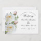 Enkel, traditionell inbjudan till Vit ros-bröllop. Bröllop par på framsidan, Bröllop och mottagningsinformation på baksidan.