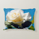Vit ros under blå himmel. Ett brant foto av ett vackert blommande ro är en underbar blommigt. Lugnens skönhet i vit ros återspeglar nystart, renhet, lojalitet och oskuld. Vit ros symboliserar det unga kärlek som bruden har för sin make. Vit ros symboliserar också grunden för ett förhållande, vilket är anledningen till att de ofta ses på en bröllopsdag. Vit ros är en traditionell bröllop-blomma. Vit ros är en passande blomma för att fira ett nytt romantiskt och civilt band.