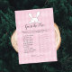 En vit kanin ovanför speltitel med flicka rosa, diamant argyle bakgrund. Mallar skapat åt dig. Det här är en gissning på prisa babyduschspel.