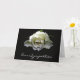 Älskvärt fotografera av en vit rosblom, med vattenliten droppe, på den, mot en svart bakgrund. Sympatikänslor, på insidan och är ut fullständigt anpassadet, så att du kan ändra några av texten. Älskvärt långt att överföra dina tankar och böner.