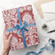 Vit & rött blom- damastast slående in papper presentpapper