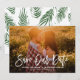Snyggt spara datum meddelande har en modig, modern, modig kalligrafi med grönt löv mönster. Detta kommer att vara en perfekt för att spara datumet för vår och sommaren bröllop. Du kan anpassa baksidan genom att lägga till ditt eget mönster eller lägga till ett annat foto.