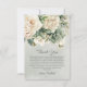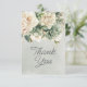 Uttryck tacksamhet med elegant stil med detta blomstermotiv- tackkort, med mjuka krämfärgade rosor, blekgröna peonior och subtila förgyllda accenter på en salviafärgad akvarellbakgrund. Framsidan visar ett graciöst ”Tack” i flytande skrivstil, medan baksidan ger utrymme för ett hjärtligt meddelande till vänner och familj. Perfekt för stora födelsedagar, bröllop, årsdagar eller någon annan speciell tillställning. Tryckt på högkvalitativt kartongpapper ger denna design tidlös sofistikation till varje tackkort.
