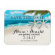 Den här söta Starfish-paret med böjlig bröllop-magnet har ett vismskt par av stjärnfisk som "håller händer" på en vit, sandstrand - perfekten avslutar hand om dina utskick! Det finns också möjligheter att matcha bröllopsinbjudningar, spara datumen, kuvert, klistermärken, OSA kort, pappra tallrikar, underlägg och magnet-tjänster! Om du vill ha frågor eller anpassningsbar kontaktar du: cheryl@cheryldanielsart.com. ’White Sands Starfish Beach’ design by Cheryl Daniels © 2015.