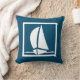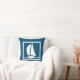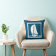 En del av havet som går under vatten torkar ned den vita segelbåten på marinens blå kudde på ena sidan och marin och vit remsa på baksidan.