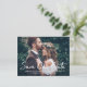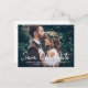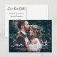 Mjukt och romantiskt, detta kort för att spara datumet har ett foto av paret i full bleed med elegant vit borst skript typografi överlagd över den nedre delen. Paret namn och bröllopsdatum visas i ren vit sans-serif under skript rubriken. Baksidan av det postbara kortet innehåller alla viktiga detaljer. All text och foto är helt anpassningsbara.