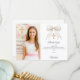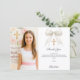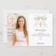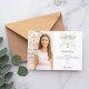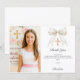Lägg till ett foto i stående format. En vit slöja med pärlor och ett förgyllt kors som dekoration. Personalisera och lägg till namn och tackkort.