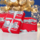 Vit Sleigh på Red Wrapping Papper Presentpapper