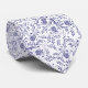 Vit slips med elegant blå blommig mönster som visas från fram- och baksidan. Designen är invecklad och förmedlar en sofistikerad ton.